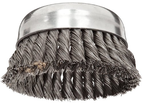!±8± Weiler Wire Cup Brush, Threaded Hole, Steel, Partial Twist Knotted, Single Row, 5" Diameter, 0.023" Wire Diameter, 5/8"-11 Arbor, 1-3/8" Bristle Length, 7000 rpm (Pack of 1)